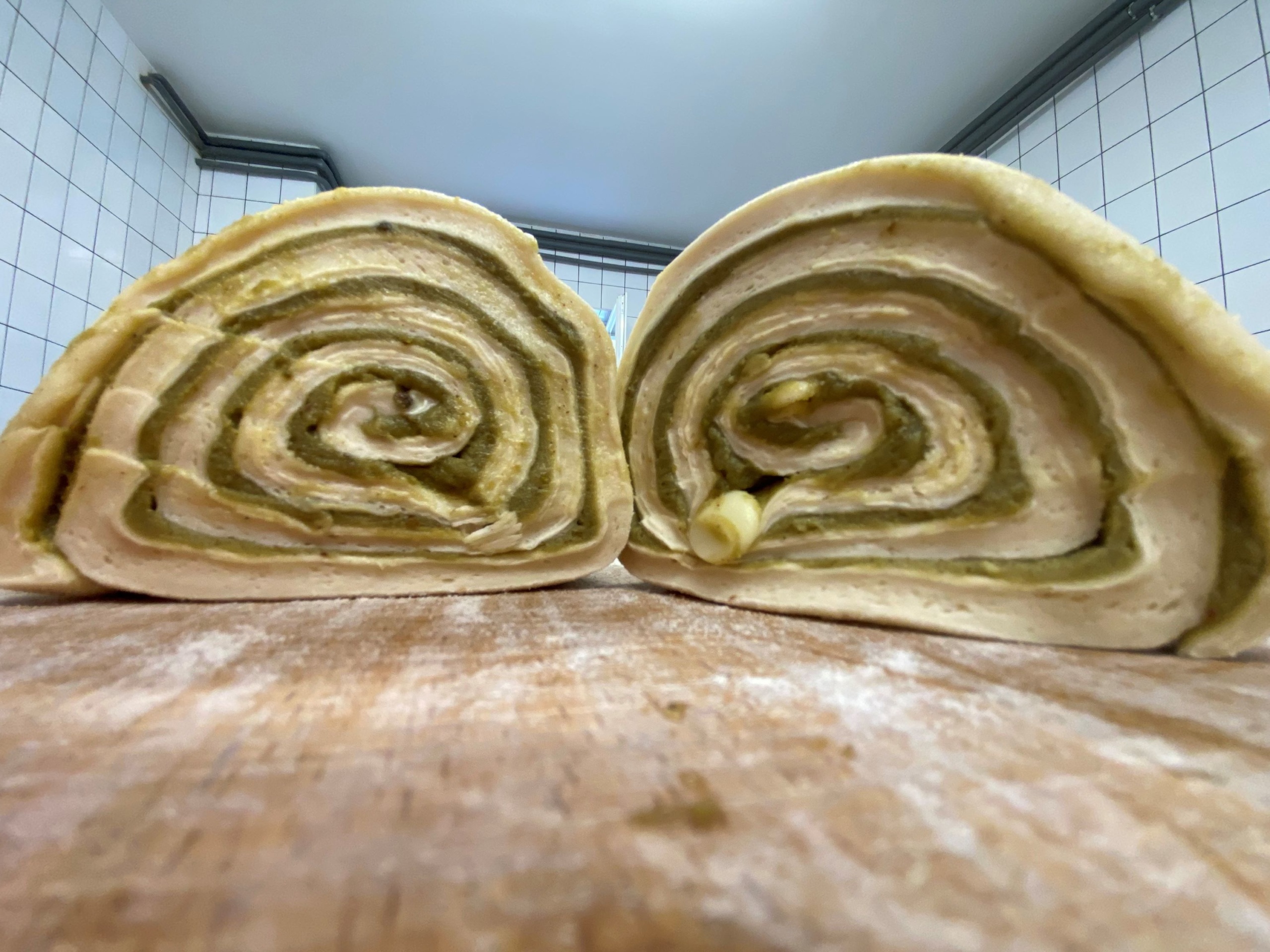 A díjnyertes pisztáciás csigát 2020-ban fejlesztette a Vál-Völgye Pékség tulajdonosa, Kenéz-Hanyecz Kinga, de rövid idő alatt a kakaós csiga mellett a második legnépszerűbb termékük lett. A pékséget Kenéz-Hanyecz Kinga éppen azért alapította, mert úgy érezte, hogy a feltörekvő hazai éttermeknek és hoteleknek szükségük lehet folyamatosan magas minőséget gyártani képes beszállítóra.