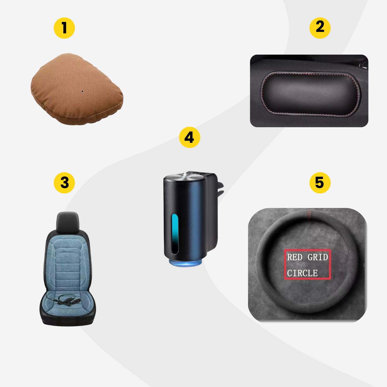 Ha hosszabb utakon is maximális komfortra vágyunk, egy-két extra párnázott felület mindig jól jön: ez a nyakpárna (1) garantálja, hogy kényelmesen érkezzünk meg úti célunkhoz. Ezek a felragasztható, apró párnák (2) pedig nemcsak a sofőr, hanem az utasok számára is személyre szabják az üléseket. Végezetül pedig az érzékszervekről se feledkezzünk meg: ez a kompakt, elegáns illatosító (3) garantálja a kellemes illatot az egész út során.