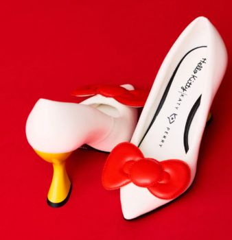 A Sanrio-karakter 50. születésnapjára életre hívott kollekció nyár végén jelent meg a piacon. Három extrém lábbeliből áll: egy csillogó, Hello Kitty-s magassarkút, egy kövekkel díszített balerinacipőt, és egy elegáns, masnival díszített magassarkút dobott piacra Katy Perry.