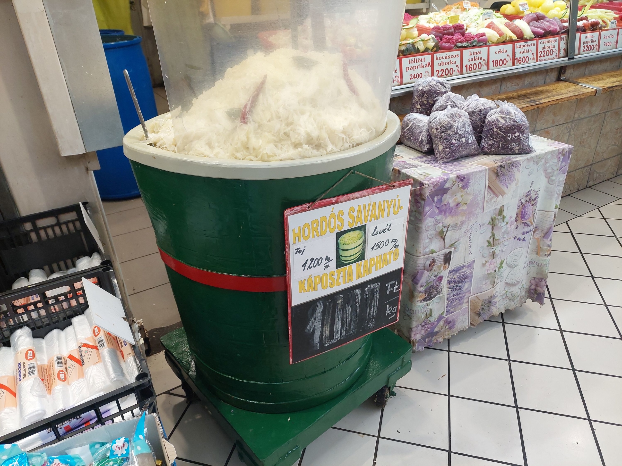 a hordós savanyúkáposzta ára 1000 forint/kilogramm.