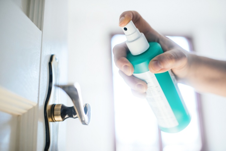 Nagyobb felületeken (szekrény) vagy olyan bútorokon, amiket nem lehet egyszerűen letörölni – mint például a kanapé és a szőnyeg -, használható fertőtlenítő spray. Az EPA (United States Environmental Protection Agency) a Lysolt ajánlja az amerikaiaknak, ám ennek híján más alternatívát kell alkalmaznunk itthon. A Sanytol Univerzális Fertőtlenítő Spray szinte minden felületre használható, ám ugyancsak hiánycikk. A kívánt hatást azonban el lehet érni a Pronto multifunkcionális felülettisztítójával is.