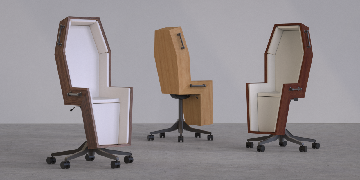 Az Egyesült Királyságbeli Chairbox névre keresztelt cég legújabb tervezése sokakat megdöbbentett: a koporsóformájú székek ugyanis tökéletesen bemutatják, hogy hogyan érzik magukat sokan miközben egy irodában robotolnak életük minden napján.