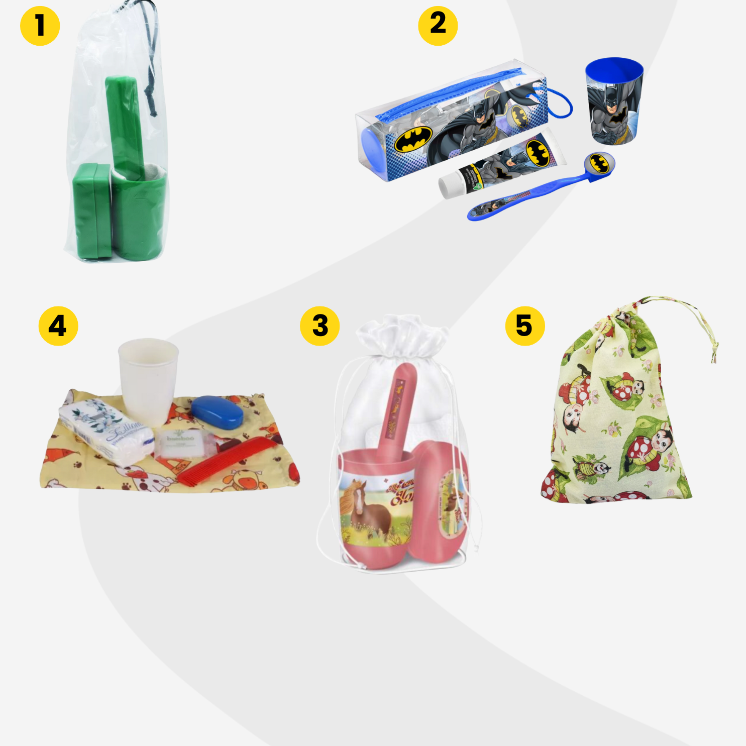 A kisebbek számára különösen aranyos választás a tisztasági csomag lovacskás tokban (3), amely tökéletesen alkalmas az iskolai használatra. Ha változatosabb megoldást keresünk, ez a tisztasági csomag (4) választható mintával érkezik, és mindent tartalmaz, amire a gyereknek szüksége lehet: fésűt, zsepit, fogmosó poharat is. A katicamintás iskolai tisztasági csomag (5) szintén az összes alapfelszerelést biztosítja, így ideális választás a teljes körű higiéniai ellátáshoz.