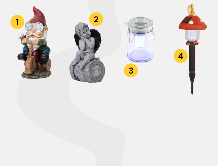 Aki nem akar egy vagyont költeni, mégis feldobná valamivel az udvarát, ő is bőségesen válogathat jobbnál jobb termékek közül. Örök kedvencek a világító szobrocskák, amik általában napelemmel működnek és sötétedéskor automatikusan bekapcsolnak.