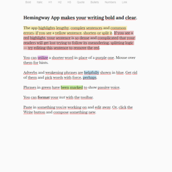 Fantasztikus, ha van egy barátod, aki átolvassa a dolgozatodat, mielőtt elküldöd – de mi van, ha az esszéidet olvasó barátod a saját dolgozatával van elfoglalva? Lépj be a Hemingwaybe, egy olyan weboldalba, amely részletesen lebontja az írásodat, és tippeket ad arra, hogy mire kell figyelned a szerkesztés során.