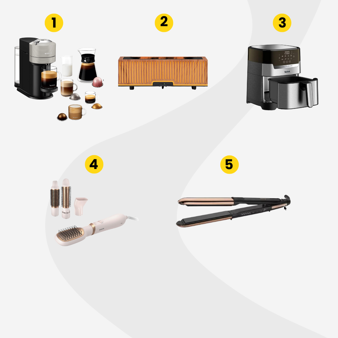 A Krups Nespresso kávéfőző (1) remek ajándék lehet a kávérajongóknak — könnyű vele egy gyors, finom kávét készíteni reggel, vagy hétvégén is tökéletes társ egy kis nyugalomhoz. Ez az aroma diffúzor (2) csendesen működik, ráadásul kétszínű háttérvilágításának hála nagyon dizájnos ajándék is.A hajformázó eszköz, legyen szó erről a Philips levegős modellről (4), vagy egy minőségi hajvasalóról (5) szuper praktikus ajándék, ha az illető gyakran formázza a haját — így kevesebb idő alatt is szép frizurát varázsolhat magának, ami ünnepek környékén különösen hasznos lehet. A Home&Cook 2 az egyben forrólevegős sütője (3) ideális ajándék lehet azoknak, akik szeretnek egészségesebben sütni-főzni otthon. Az Extra Crisp technológia tökéletes egyensúlyt teremt a hőmérséklet és a forró levegő között így ropogós aranybarna ételeket készíthetünk vele.