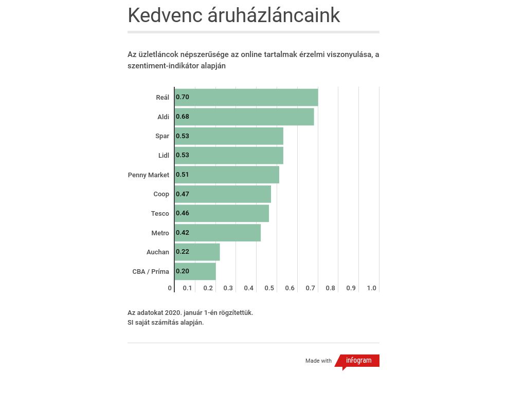 A kutatás során azt vizsgálták, hogy milyen volt az üzletláncoknak a közösségimédia-lenyomata, az online térben megjelenő vélemények alapján melyik a magyarok 2019-es kedvence. A két kutatás eredményének összehasonlításából jól látható különbségek mutatkoznak meg preferenciákban, azonban vannak hasonló tendenciák is. Míg a netnográfiát alkalmazó vizsgálat rávilágít az érzelmek és megnyilvánulások mögött meghúzódó motivációkra, addig a szavazás egy tudatosabb sorrend felállítására készteti az aktív válaszadókat.