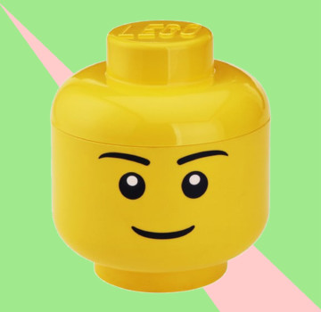 Vissza egy kicsit a LEGO-hoz! Ez a sárga fejet formázó tároló doboz lehet a másik, amibe örömmel pakol majd a gyerek játékot, tanszert, vagy bármi egyebet. Lehet például édesség-vagy gyümölcstároló is, na meg persze a LEGO-figuráké is…