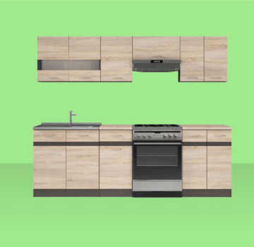 Kompakt, elegáns, több színben kapható, a célnak minden szempontból megfelelő konyhabútorzat, öt szekrénnyel és hét kihúzható fiókkal. Az egész hossza mintegy két és fél méter, úgyhogy kisebb konyhákba ideális igazán.