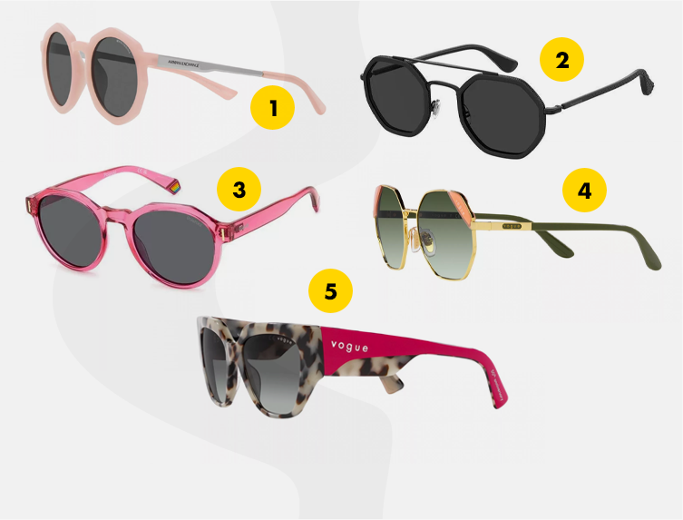 A Vogue napszemüvegeivel mindig az aktuális trendet követi, ez a rózsaszín, csajosabb szemüveg (5) is tökéletesen hozza az idei stílustrendet.