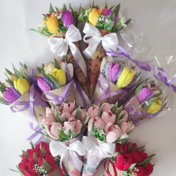 A Meska által forgalmazott, kézzel készített textiltulipánok remek csavart visznek a nőnapi ajándékozásba: a hagyományos ajándékozási formáról nem kell lemondanunk, mégis egyedi meglepetést okozhatunk nőismerőseinknek ezekkel a kedves darabokkal.