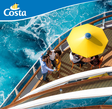 A szemfüles utazó a Costa európai 7-14 napos túráira már nagyon kedvező áron, 250 EUR alatti összegért is el tud menni. Sőt, a szülőkkel egy kabinban utazó, 18. évét be nem töltött egy vagy két gyerek teljesen ingyen nyaralhat!