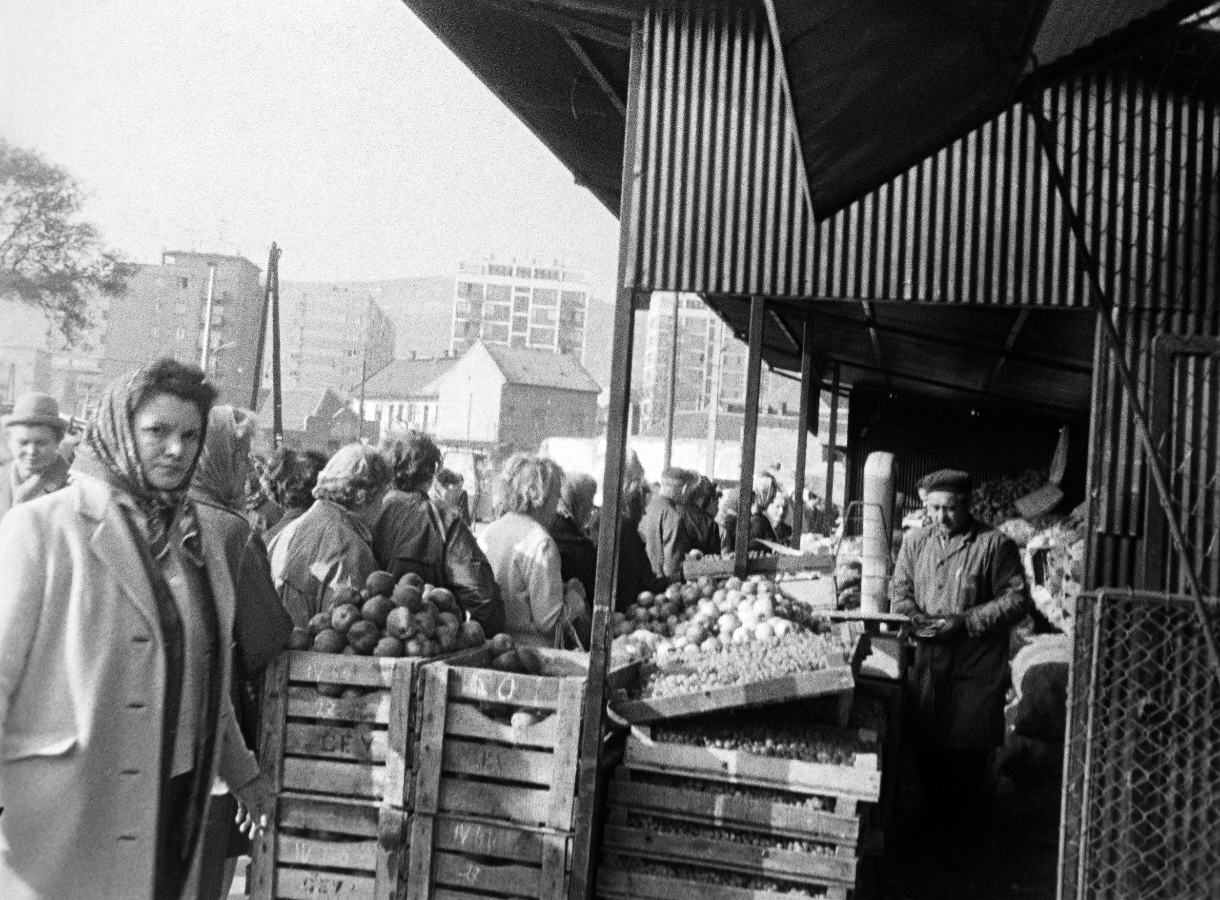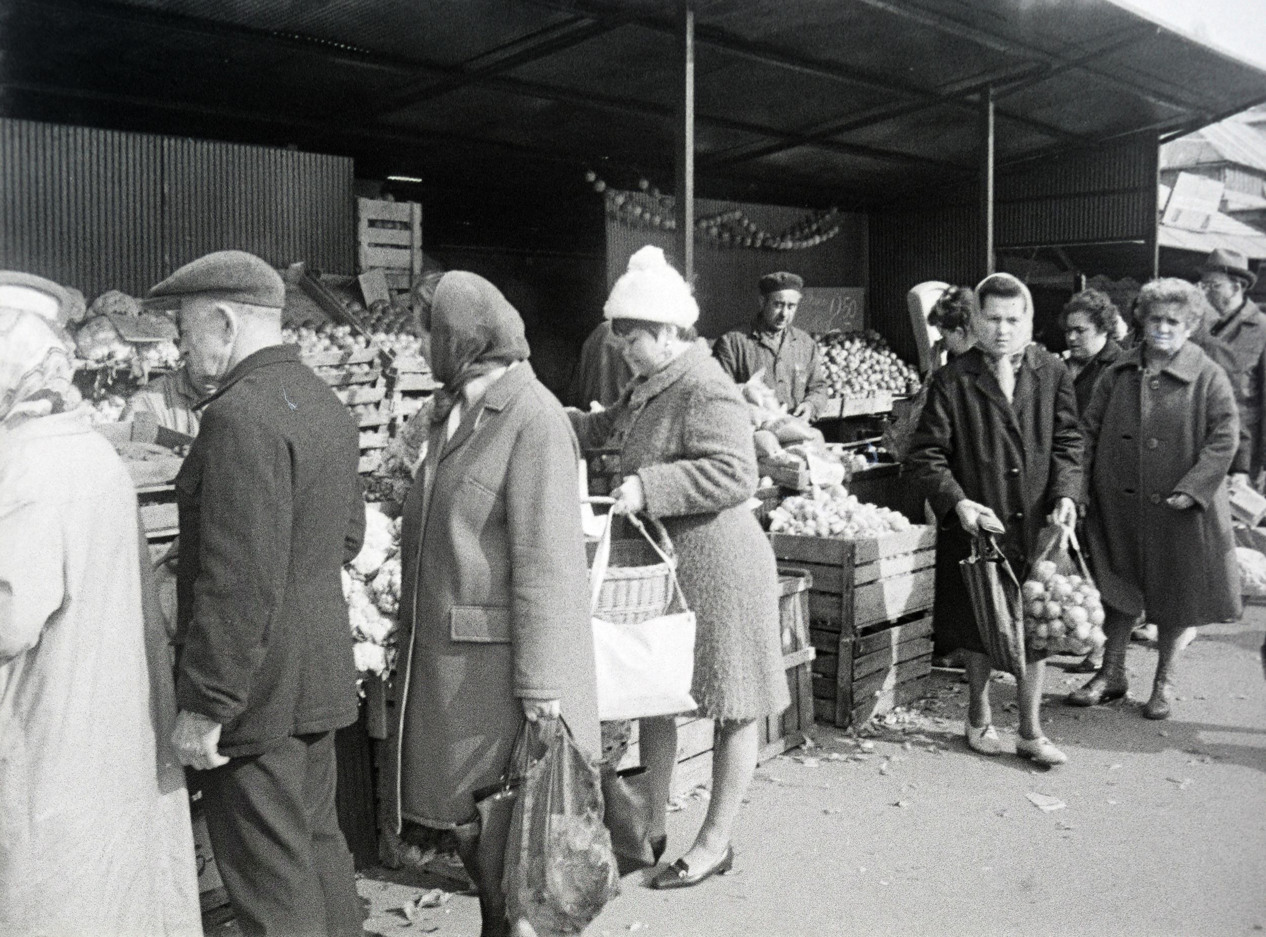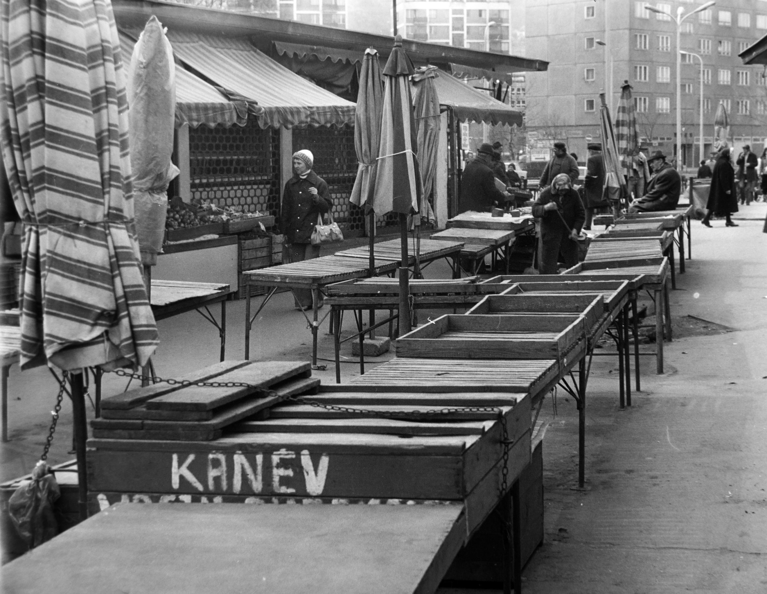“Óbudán a Kórház utcai piac Zöldért-boltjának a vezetője, Kovács Istvánné elégedett. – „Ez az első péntek az idén, amikor elmondhatom, végre bőséges a kínálatunk” – mondja. – „Annyi árut kaphatunk a Nagyvásártelepről, amennyit rendeltünk. Tele van a pult áruval.” Most kevesebb ideges embert látni, mint akár egy héttel ezelőtt, türelmesen várakoznak, míg sorra kerülnek. A Zöldért-boltban a legnagyobb a forgalom, a magánkereskedők standjain is sok az áru, erre a piacra a környező falvakból a kistermelők is hoznak fel árut. Reggel van még, úgy látszik, még nem tájékozódtak eléggé, mert náluk jóval drágább az áru, mint a szövetkezeti kereskedelemben.”