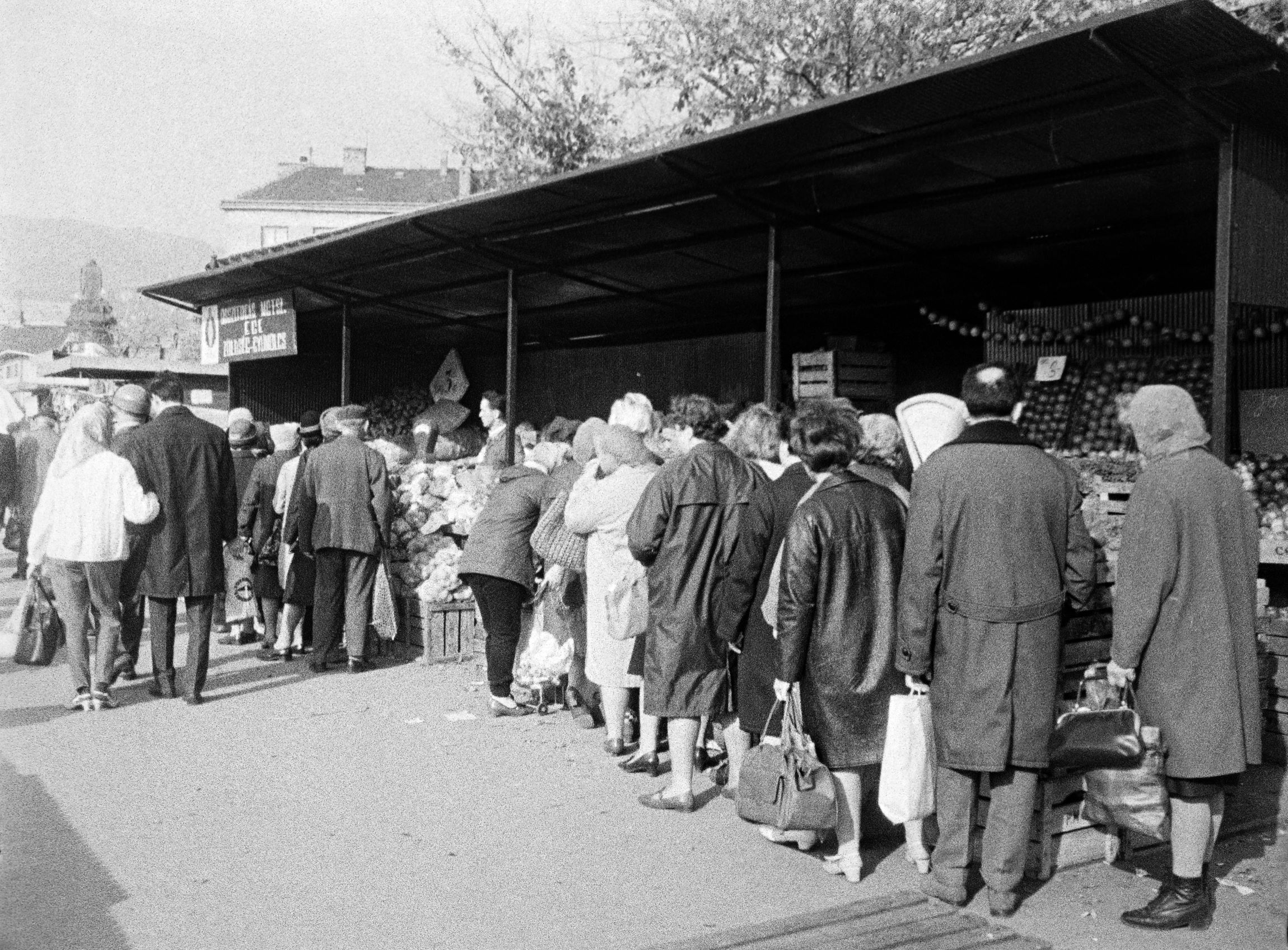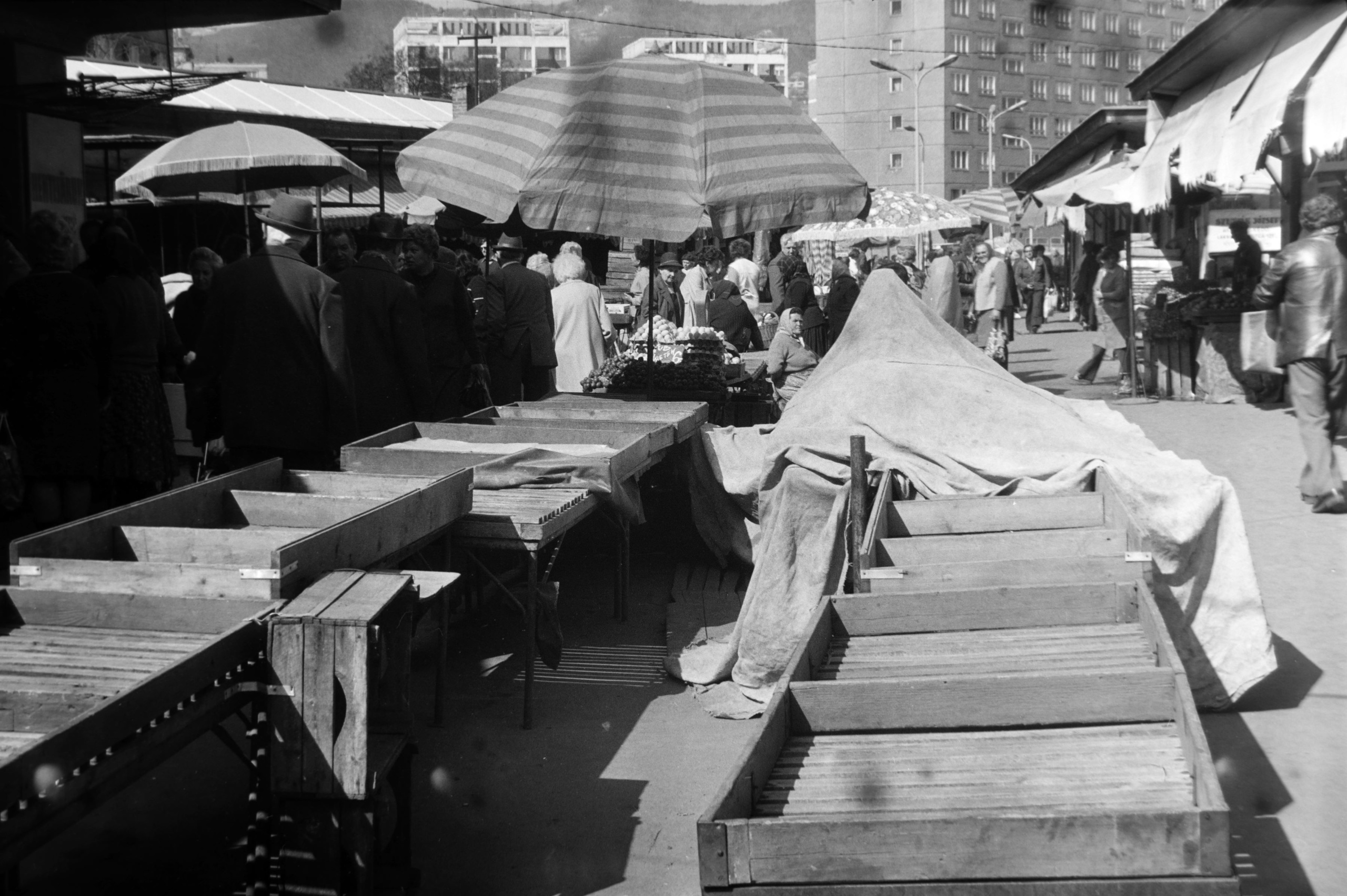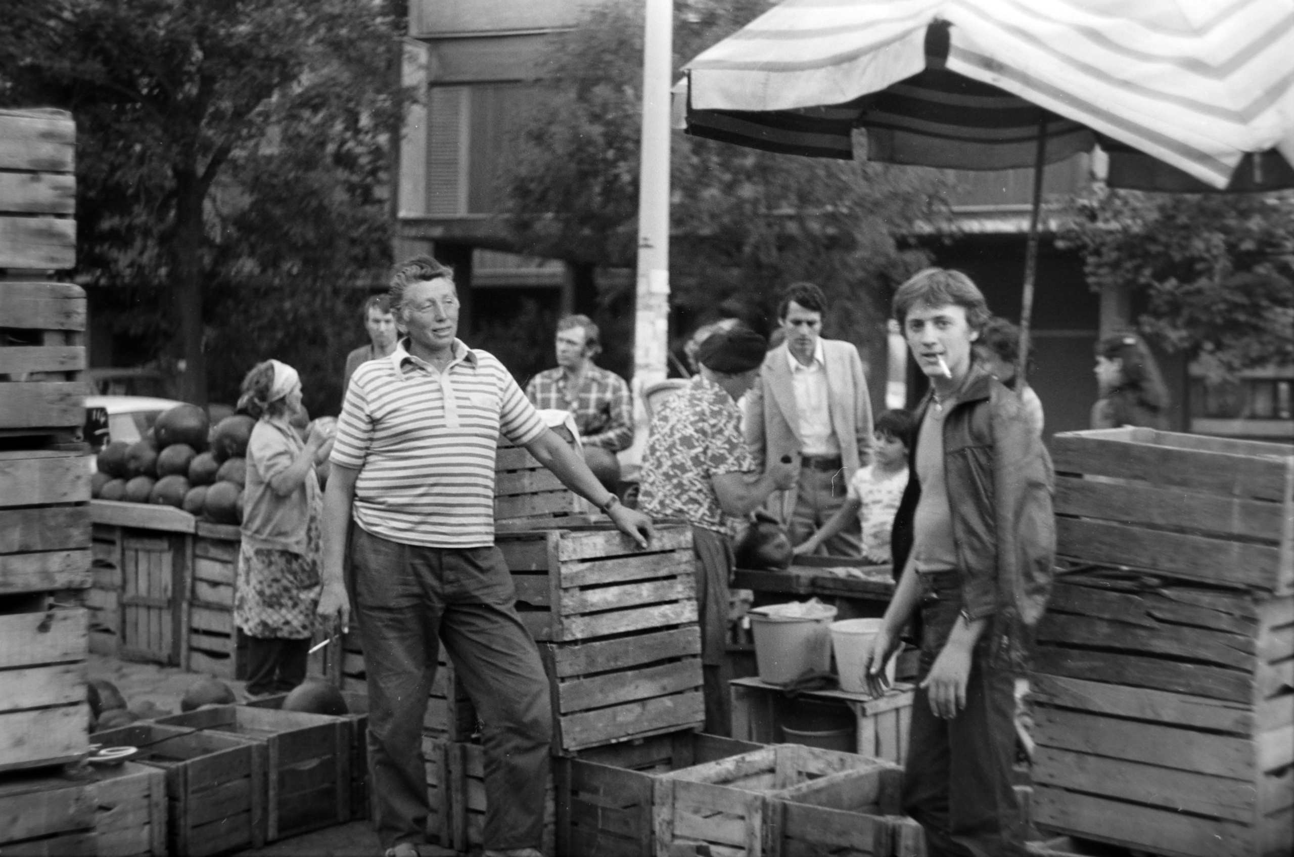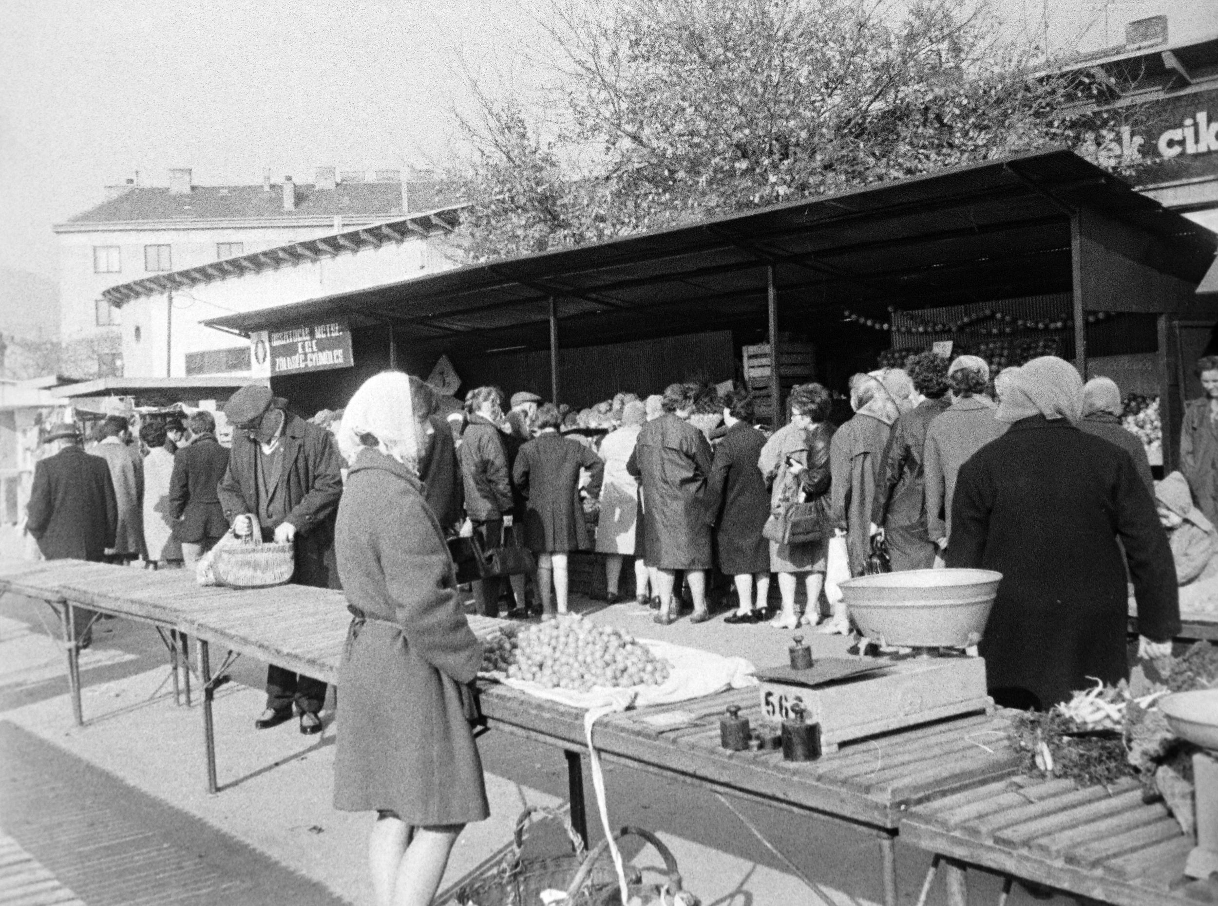 “Óbudán a Kórház utcai piac Zöldért-boltjának a vezetője, Kovács Istvánné elégedett. – „Ez az első péntek az idén, amikor elmondhatom, végre bőséges a kínálatunk” – mondja. – „Annyi árut kaphatunk a Nagyvásártelepről, amennyit rendeltünk. Tele van a pult áruval.” Most kevesebb ideges embert látni, mint akár egy héttel ezelőtt, türelmesen várakoznak, míg sorra kerülnek. A Zöldért-boltban a legnagyobb a forgalom, a magánkereskedők standjain is sok az áru, erre a piacra a környező falvakból a kistermelők is hoznak fel árut. Reggel van még, úgy látszik, még nem tájékozódtak eléggé, mert náluk jóval drágább az áru, mint a szövetkezeti kereskedelemben.”