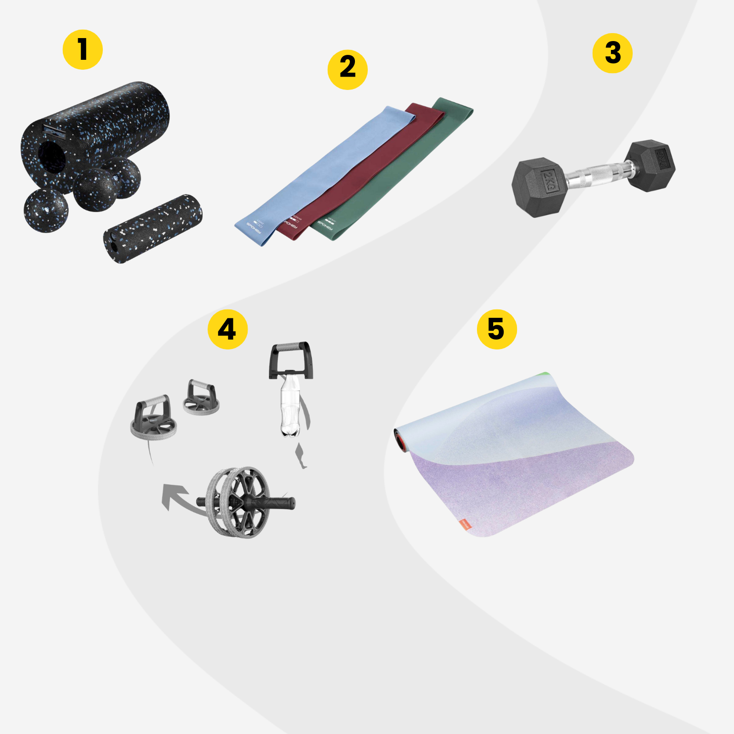 Ezek azok a sportszerek, amelyek egyetlen otthoni készletből sem hiányozhatnak: számos egyszerű gyakorlat során, sokrétűen használhatók, és nem foglalnak nagy helyet. A kényelmes bemelegítés, nyújtás és gyakran a gyakorlatok elengedhetetlen eszköze is a jógamatrac: a Spokey matraca trendi mintájával és kényelmes kialakításával bárki otthonában jól mutat. Az otthoni erősítés másik kihagyhatatlan eszköze a kézisúlyzó: ez a két kilós inSPORTline súlyzópár nem túl nehéz a kezdők számára, de rendszeres erősítéshez már megfelelő súlyt kínál. Az inSPORTline AB-rollerét pedig sokrétűen használhatjuk az elvégzett gyakorlatok során, hiszen edzőkerékként, fekvőtámasz-fogantyúként és tetszőleges súlyú súlyzóként is funkcionálhat.
