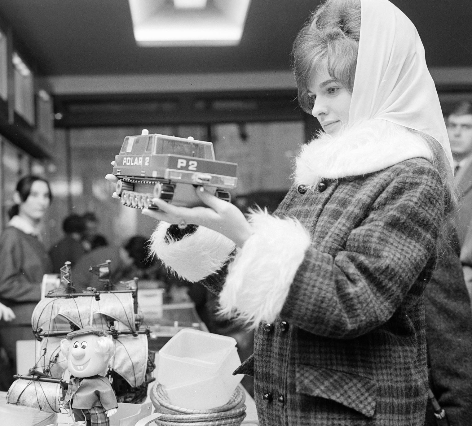 A Deák Ferenc téri Hobby bolton belül nézegeti egy vásárló ezt a makettet 1968-ban. Fotó: Fortepan / MHSZ