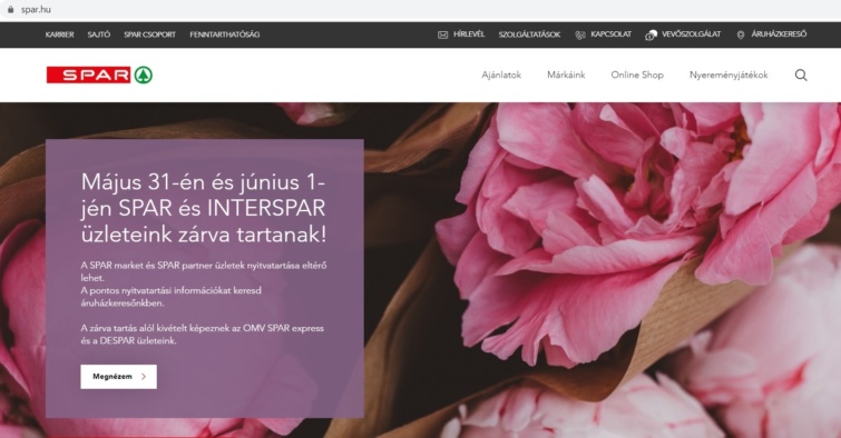 “Május 31-én és június 1-jén a Spar és Interspar üzleteink zárva tartanak! A Spar market és Spar partner üzletek nyitvatartása eltérő lehet. A pontos nyitvatartási információkat keresd áruházkeresőnkben. A zárva tartás alól kivételt képeznek az OMV Spar express és a Despar üzleteink” – írják a weboldalon.