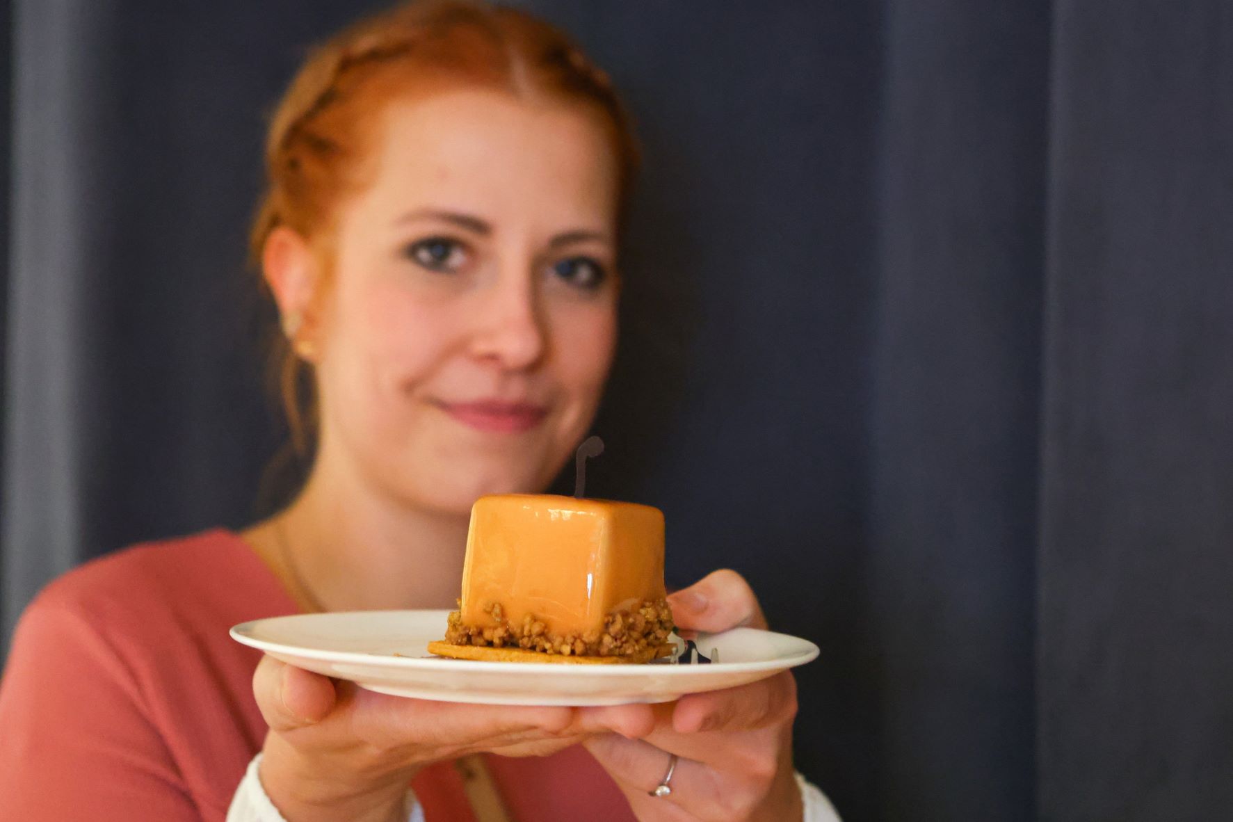 Farkas Edina, a budapesti Veranda Cukiműhely elmondta, a Budapest aranyalmája elnevezésű sütemény egy linzer alapra helyezett mousse kocka. Ezt kívülről részben giandujás tejcsokoládéba forgatott mogyoró borítja. Belsejében almás betét rejtőzik, citrom curddel és narancsos-kávés krémmel, mindezt pedig giandujás tejcsokoládé mousse veszi körül.
