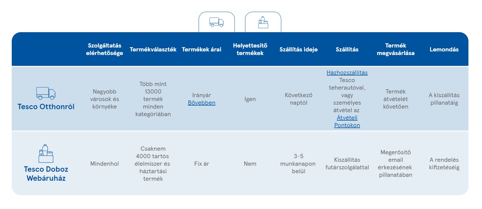 A Tesco esetében két lehetőség akad: az egyik a Tesco Doboz, a másik pedig a Tesco Otthonról – míg az utóbbit nagyobb városokba és környékükre szállítják, a Tesco Doboz Webáruház az ország teljes területén elérhető. A Doboz szolgáltatásnál az az üzenet várt minket, hogy “A rendelés kapacitása megtelt. Sajnáljuk, jelenleg nem tudjuk teljesíteni rendelését.”