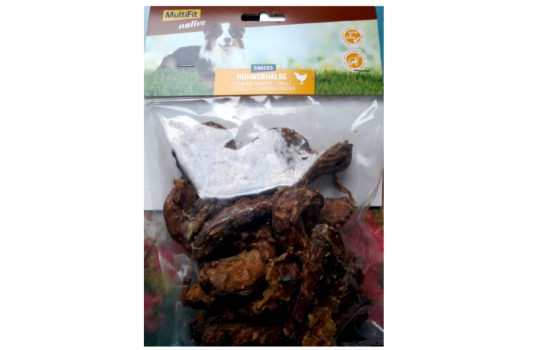 Salmonella jelenléte miatt visszahívják az alábbi azonosítókkal rendelkező 200 grammos MultiFit Native csirkenyakat, amit a Fressnapf-Hungária Kft. forgalmaz.