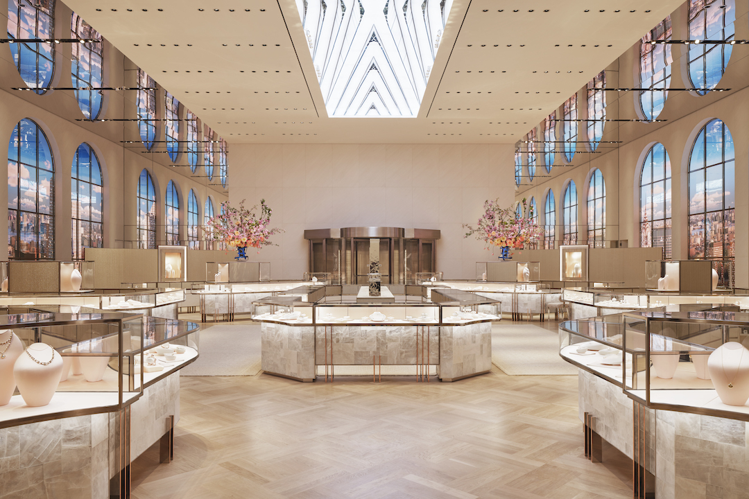 Peter Marino, építész és a New York-i székhelyű OMA Stúdió a Tiffany & Co. hagyományait, a luxushoz való kérlelhetetlen ragaszkodását igyekezték ötvözni a huszonegyedik század technológiai és építészeti elvárásaival – így nem túlzás azt állítani, hogy az üzletben tényleg a múlt és a jövő találkozik egymással. A tíz emeletes üzletbe alapvetően